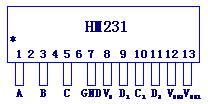 HM231采用13引脚单列直插式标准封装,它的封装形式如图1所示。各引脚名称、功能及用法如表1所列。