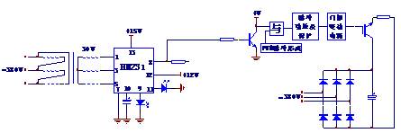 图4给出了HM231用于三相变压器降压隔离系统中的原理示图。图中一旦发生缺相,则HM231保护电路动作,输出封锁斩波器的控制脉冲,进行缺相保护。