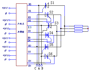 1.+24V、g1,+24V、g2要求提供电流为脉冲电流150mA,其脉冲宽度应为高频调制的双窄脉冲列,若为未调制的宽脉冲其每个脉冲宽度应不宽于300μS。 2.输出负载能力:G1、K1,G2、K2允许最大输出电流为脉冲电流400mA。 3.可触发5~1650A/100~3500V晶闸管两单元。