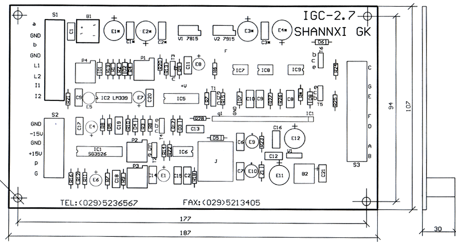 图1 IGC2.7型驱动板的元件排列图 (上图点击可放大)