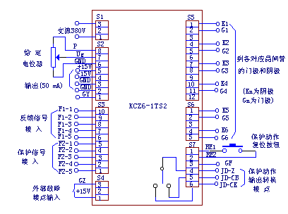 4) S2-1可做特殊给定输入应用,此时移相控制不经过板内的给定积分器和调节器,而直接加到移相触发专用集成电路的移相端,一般不用。