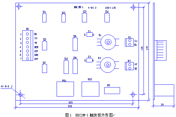 KKC2M-1单相开环过零触发控制触发板,采用过零触发调占空比方式,也可以采用相控方式,为了避免变压器负载的起动冲击电流,二种方式都具有软起动功能。当采用过零触发调占空比方式时,可以提高负载功率因数,减少设备的无功功率损耗。KKC2M-1控制板可以和各种自动化仪表配合使用,组成闭环控制系统。该控制板适用于单相半控桥整流电路及单相交流调压电路。单相交流调压时,负载可以是变压器或电阻炉。