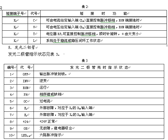 (3) RP3/T:当K3短接端子接通时,调整RP3可检查触发脉冲移相范围,整流时α应从0到150°,逆变时β应从90°到30°(相当于α从90°到150°)。顺时针α减少。
