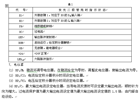(1) 将控制板上RP1~RP4电位器旋至中间位置,合控制板电源,控制板上各发光二极管指示应正常。