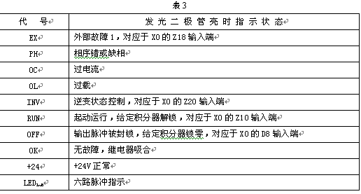 发光二极管指示状态见表3