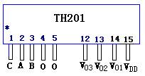 TH201的封装形式及引脚排列如图1所示,它采用单列直插式标准15引脚厚膜集成电路封装。各引脚的名称、功能及用法如表1所列。