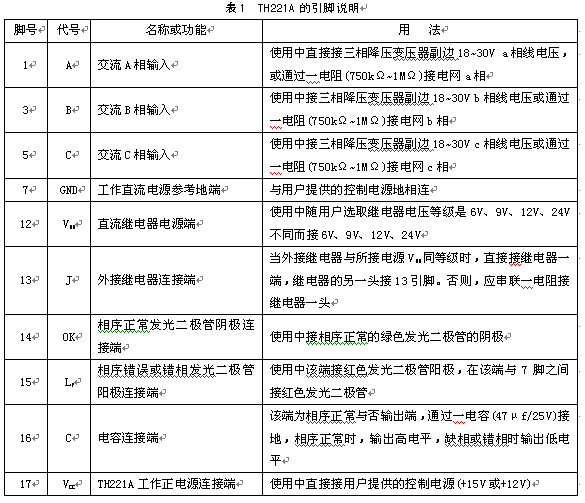 TH221A的引脚排列如图1所示。它采用单列直插式标准17引脚封装,各引脚的名称、功能及用法如表1所列。